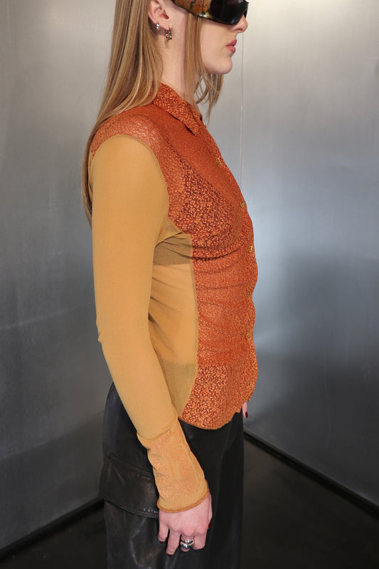 Gaultier Soleil Mesh Tribal Ruffle Top c.2004