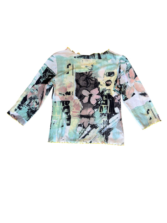 Long sleeved patterned mesh top
