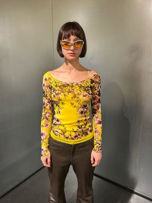 Jean Paul Gaultier Yellow Mesh Floral Top