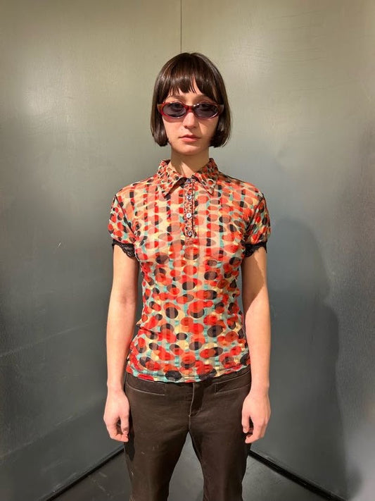 Jean Paul Gaultier polka dot mesh blouse