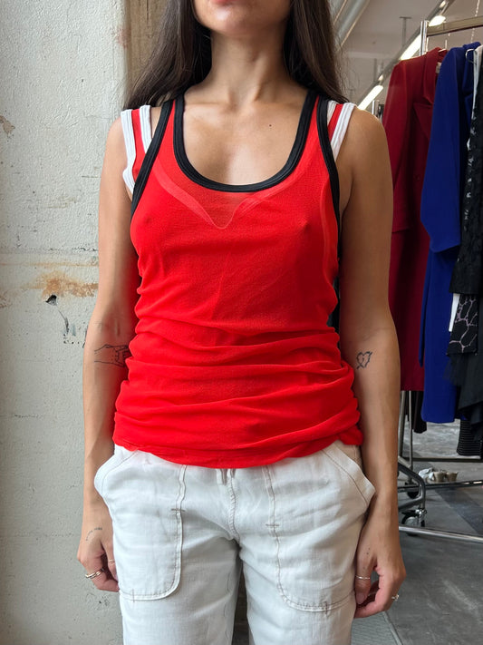 Jean Paul Gaultier hot red double layered mesh top