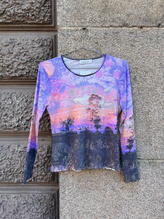 Sold outGraphic forest mesh top
