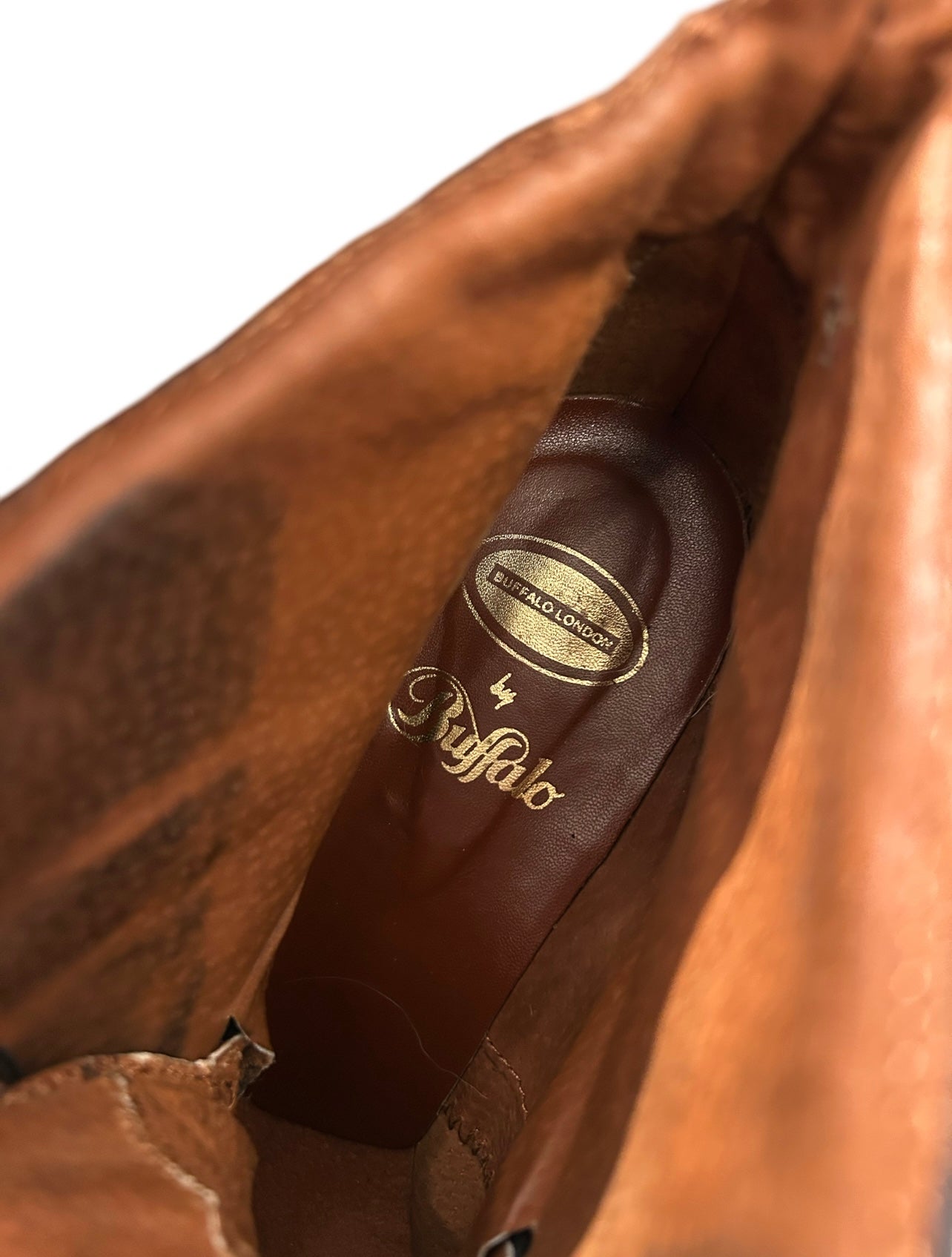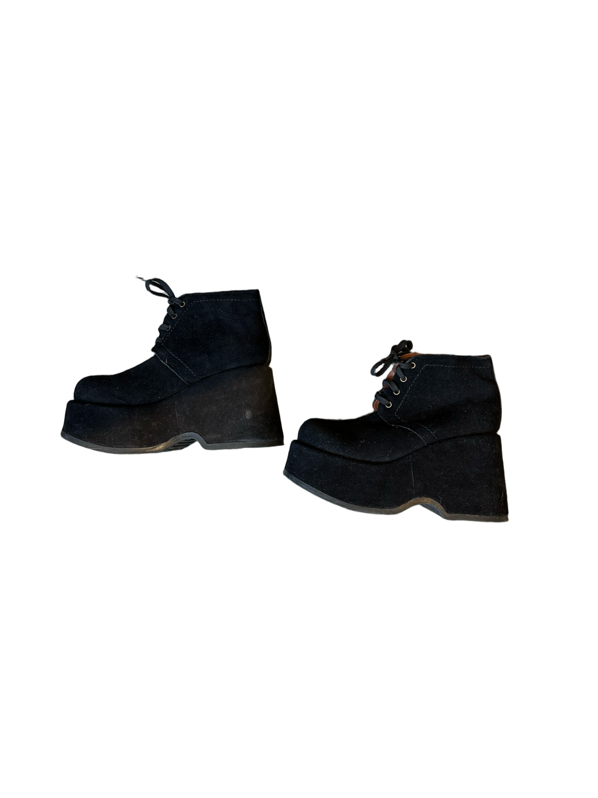 A well designed goth inspired and fun shoe in finest suede leather by Buffalo. Steady platform with a nice weight to it and lace up.