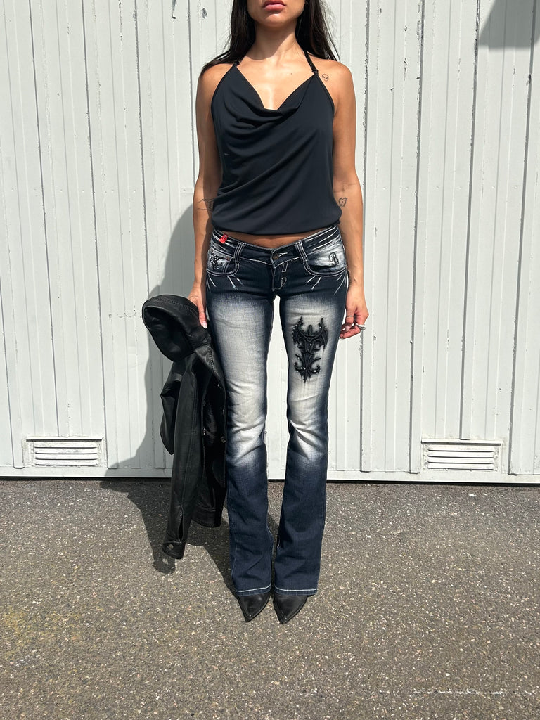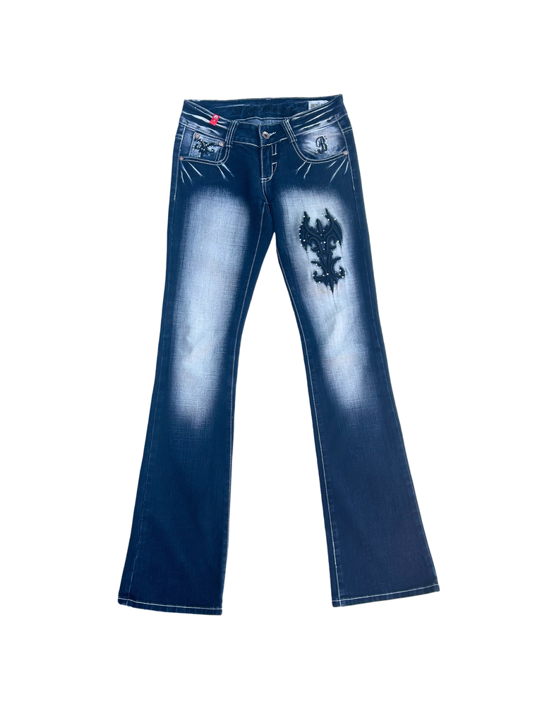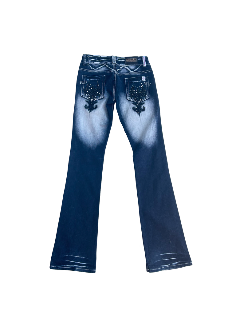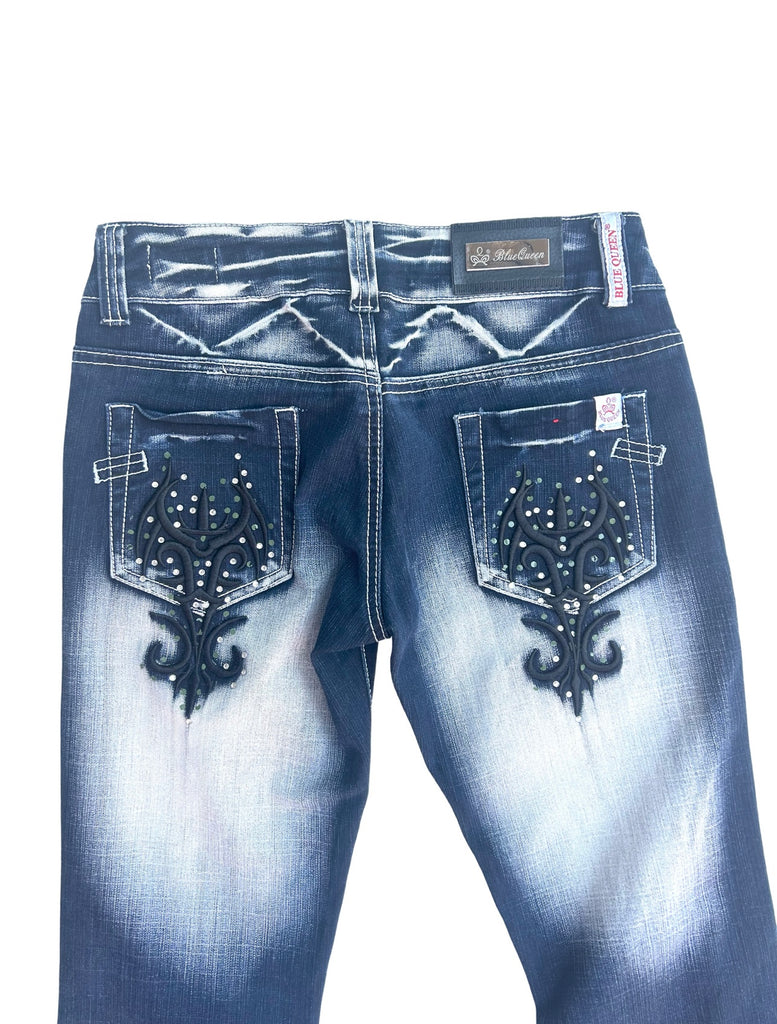 Blue Queen Y2K bejeweled bootcut jeans