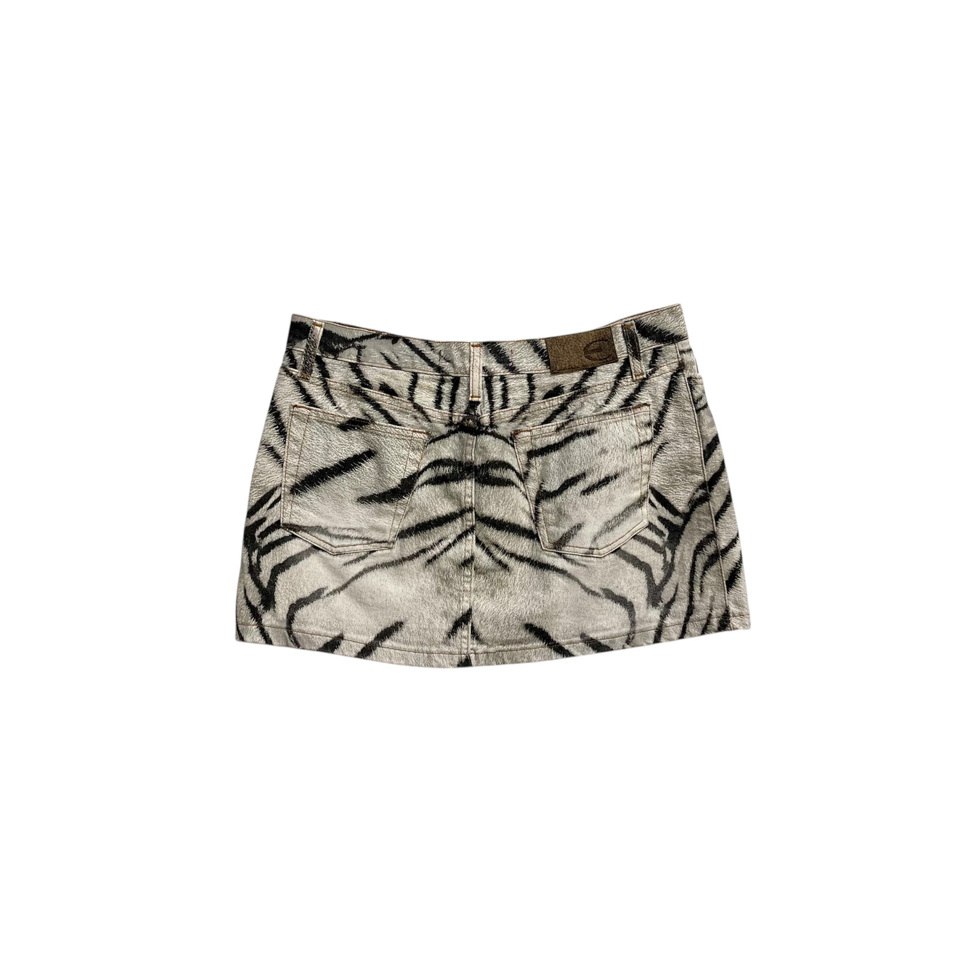 The perfect mini skirt from Roberto Cavalli. It has a zebra print in shades of black, white and grey. The skirt has four smaller pockets, two in the front and two in the back. Light brown seams around pockets, waist and hem.