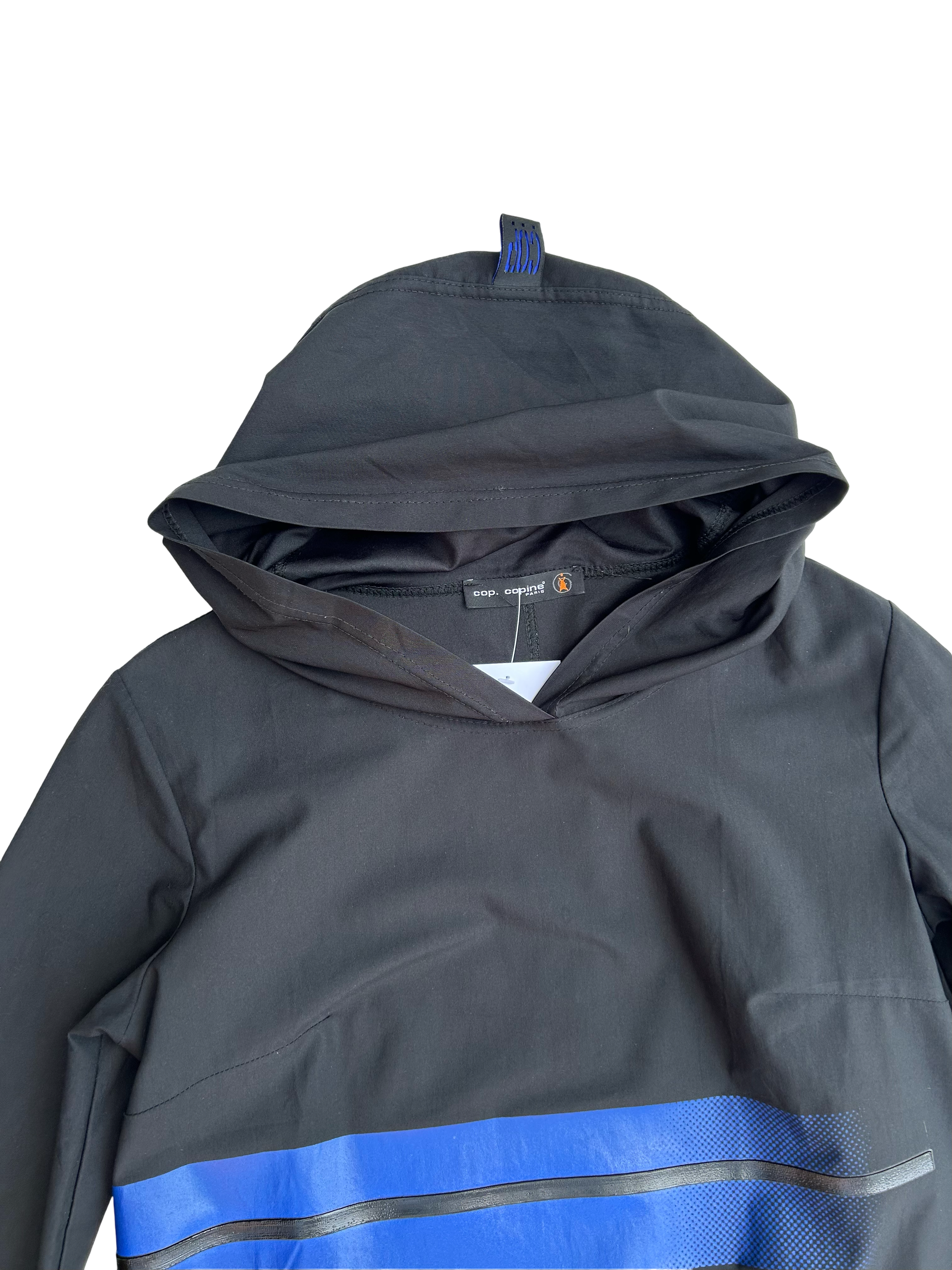 This futuristic hoodie dress from Cop. Copine is the perfect mix of sporty, comfy and sassy all in one. The dress is a knee length with small slits on side and a slight a line shape.