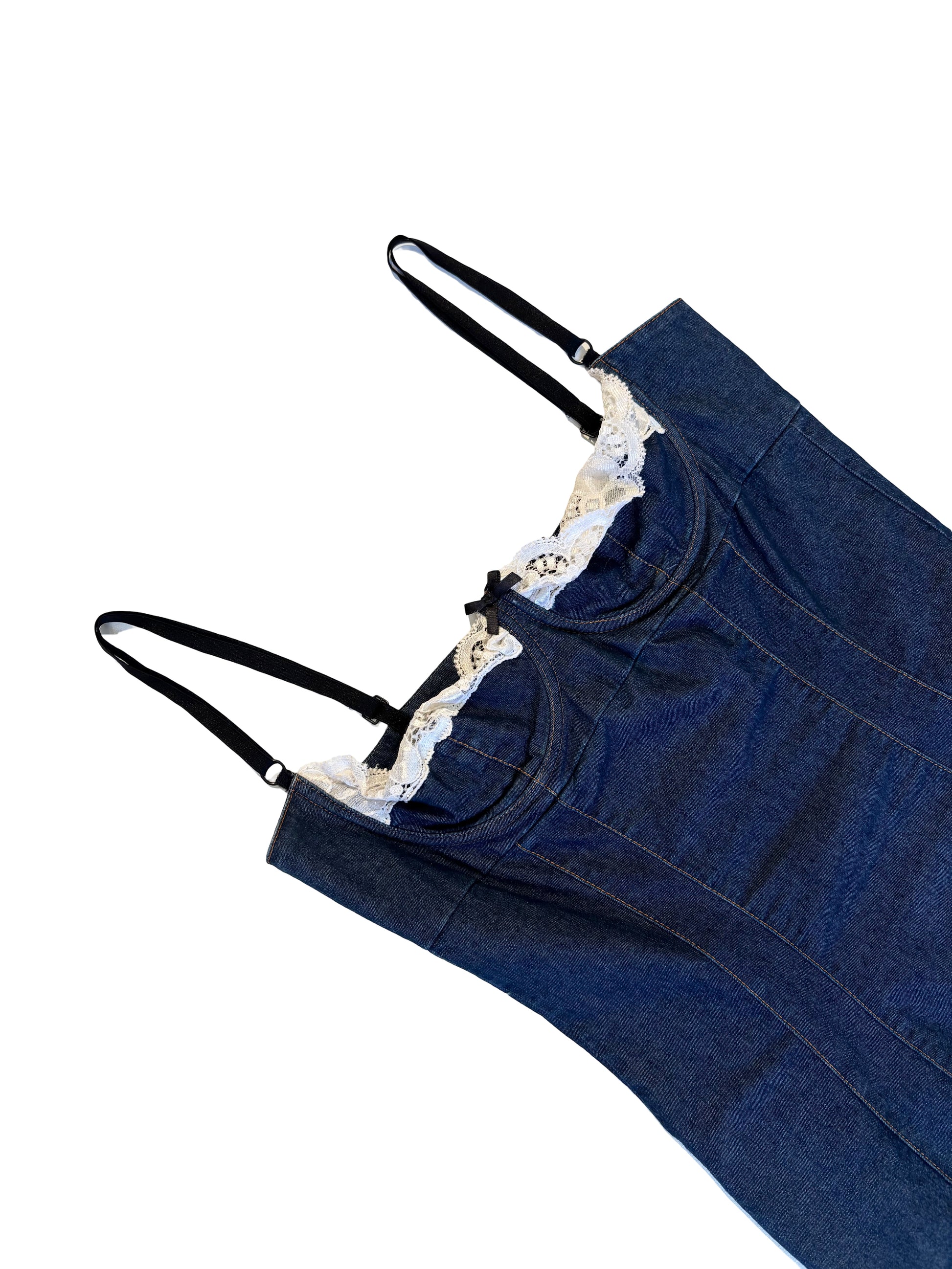 – Corset-style bustier with lace trim