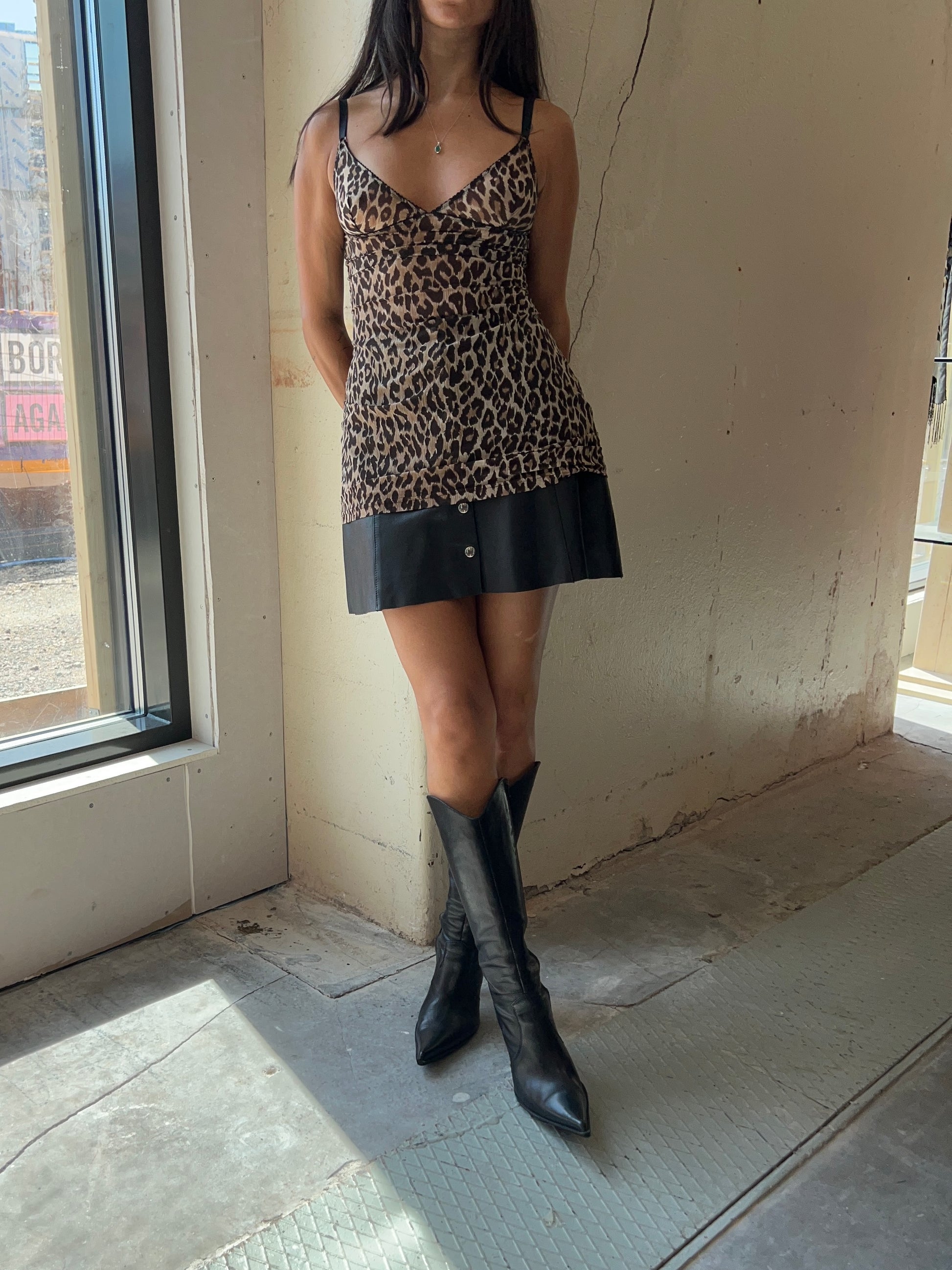 Sheer cheetah printed mini dress from Dolce & Gabbana. Thin straps and v-neckline. Wear it as a longer top or a mini dress!