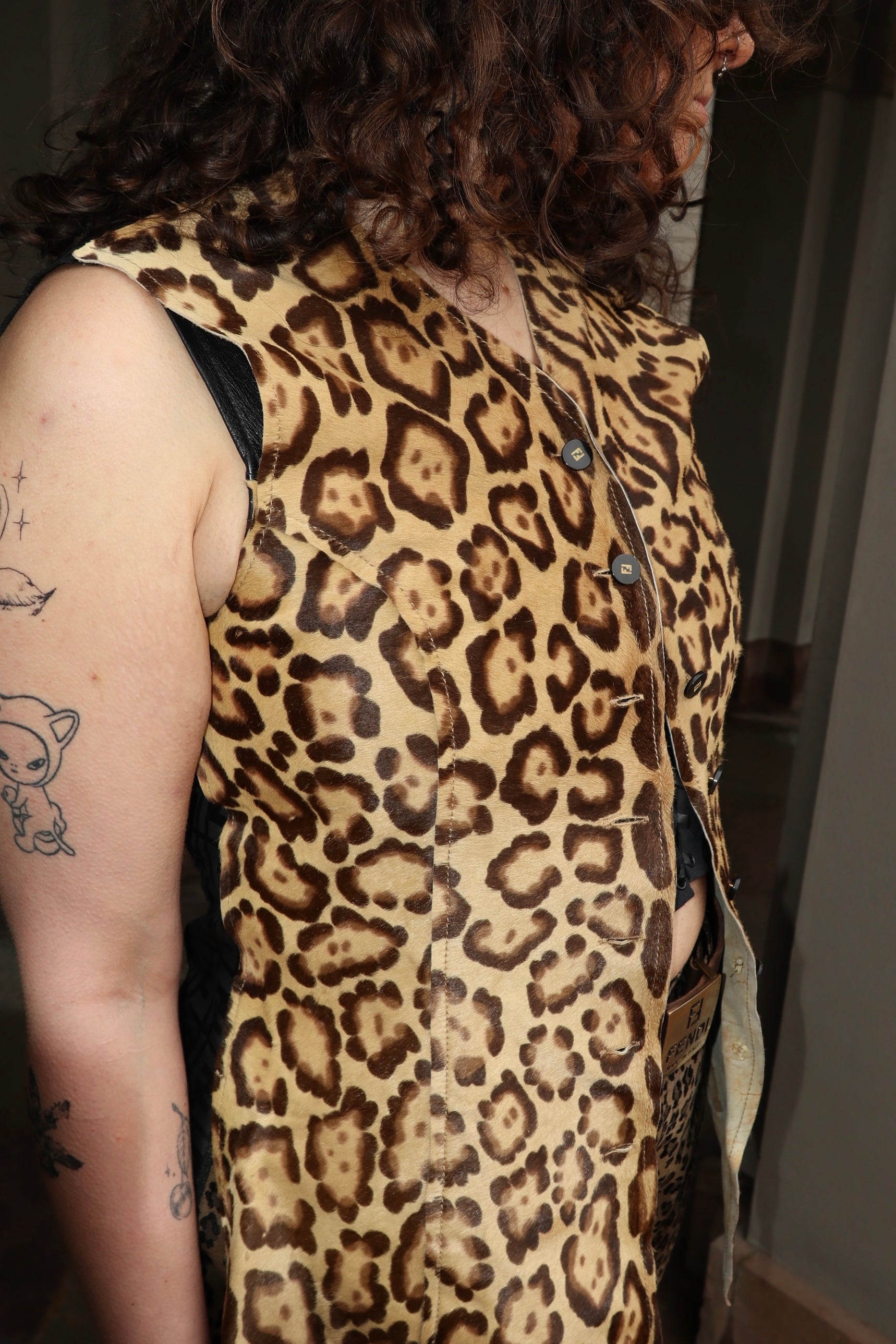 Unique vest top by Fendi, leather and monogram designed fabric combined. Fendi logo on back and on front buttons. A slightly fitted model with slits on sides.