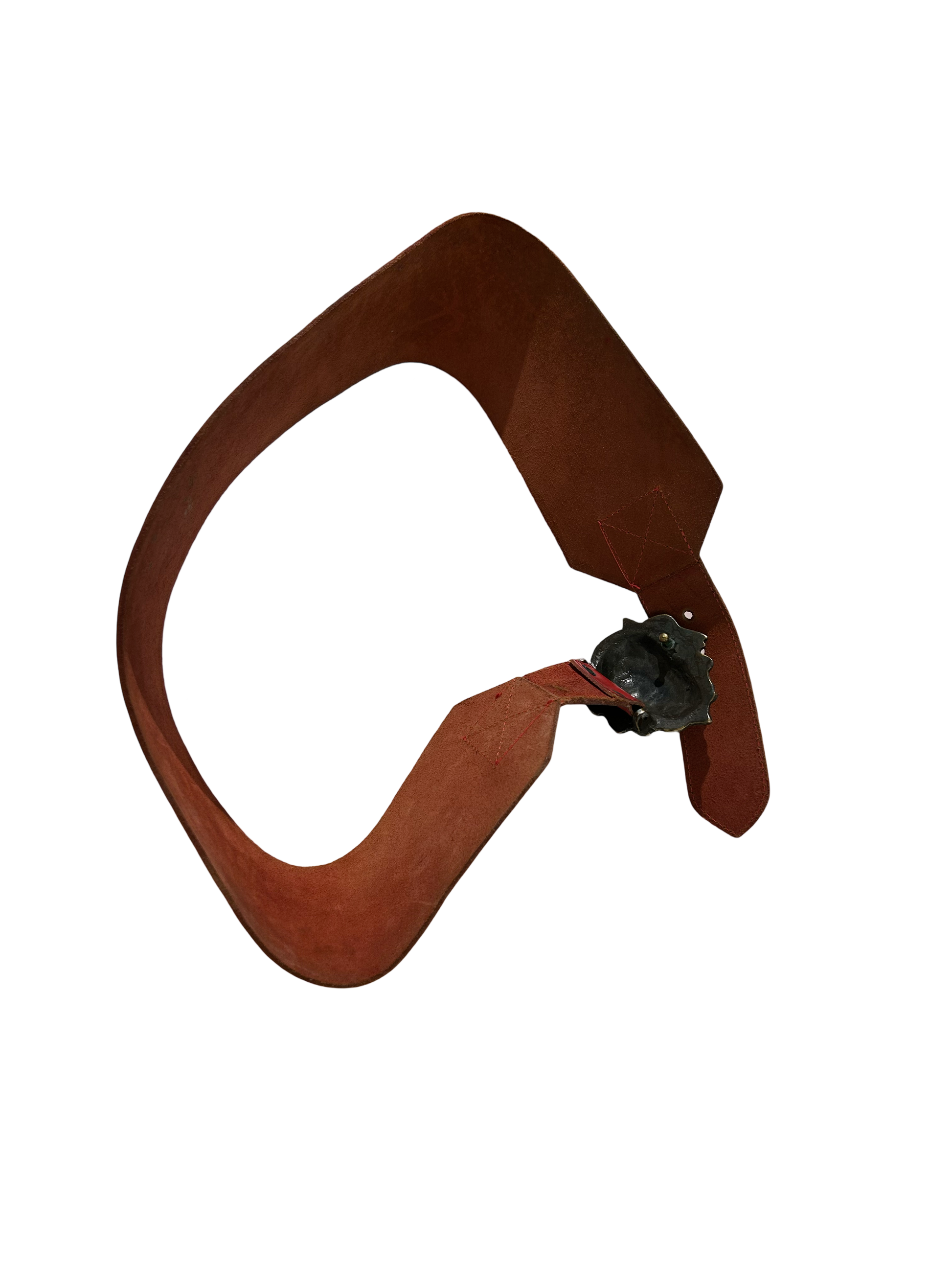 Unique big belt by Fiorucci. A royal red color with lions head in brass.