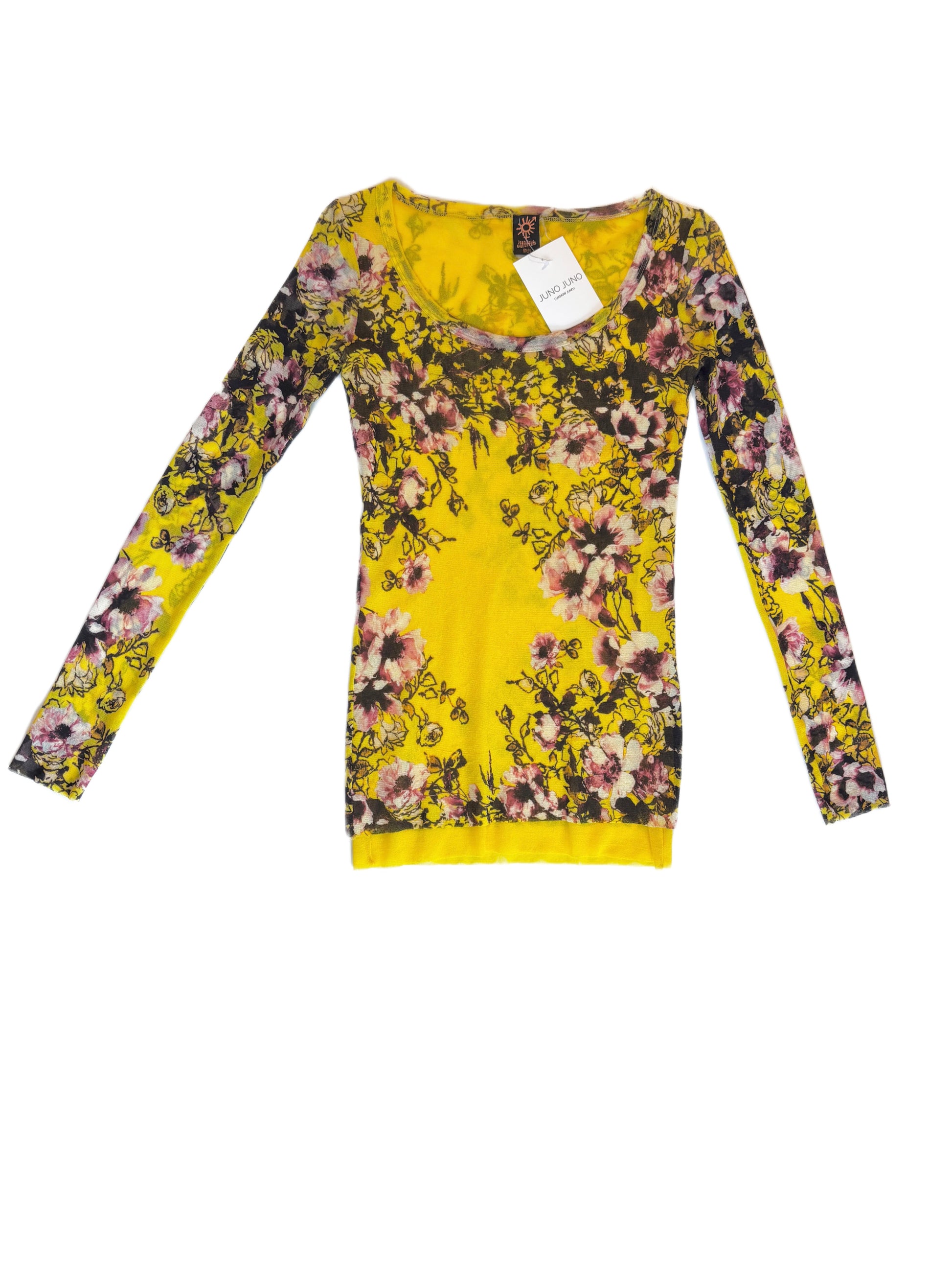 Jean Paul Gaultier Yellow Mesh Floral Top