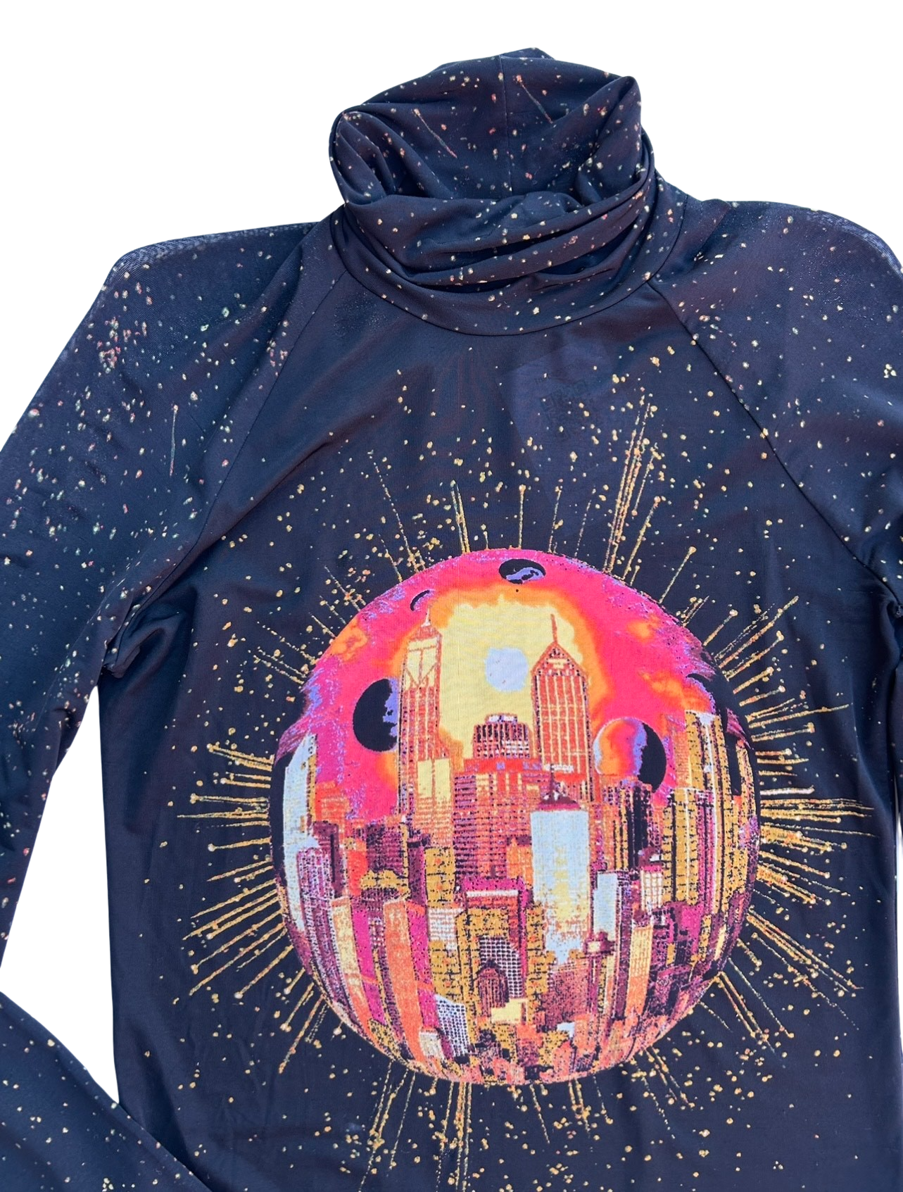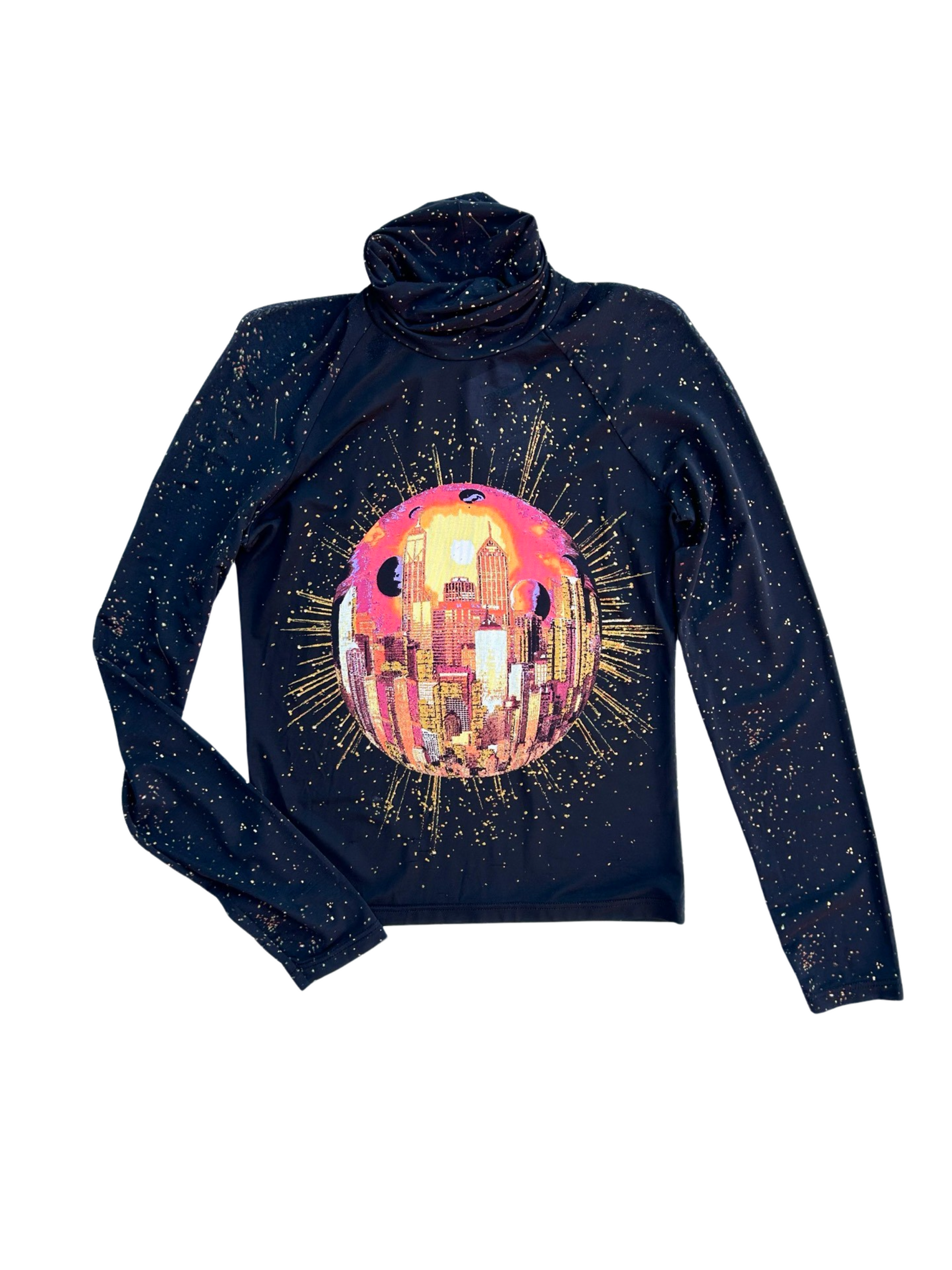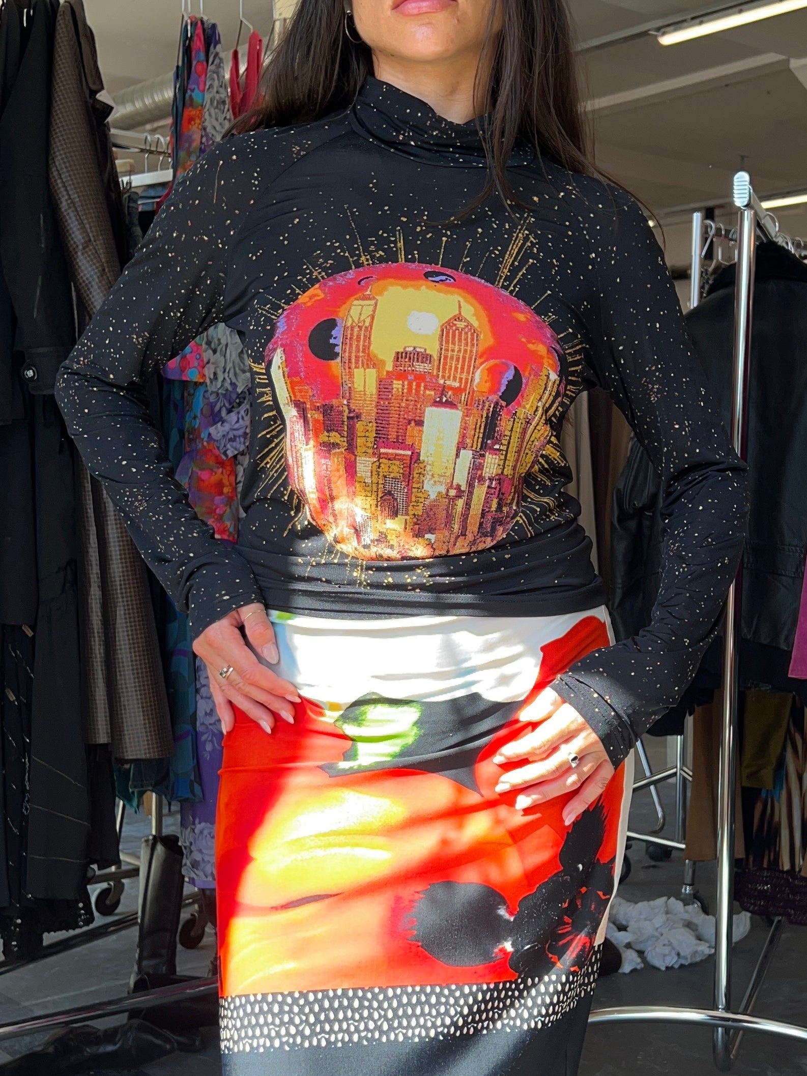 A light weight polo neck top in black and a spice themed print all over. This top gives any wardrobe that extra piece to make it interesting!