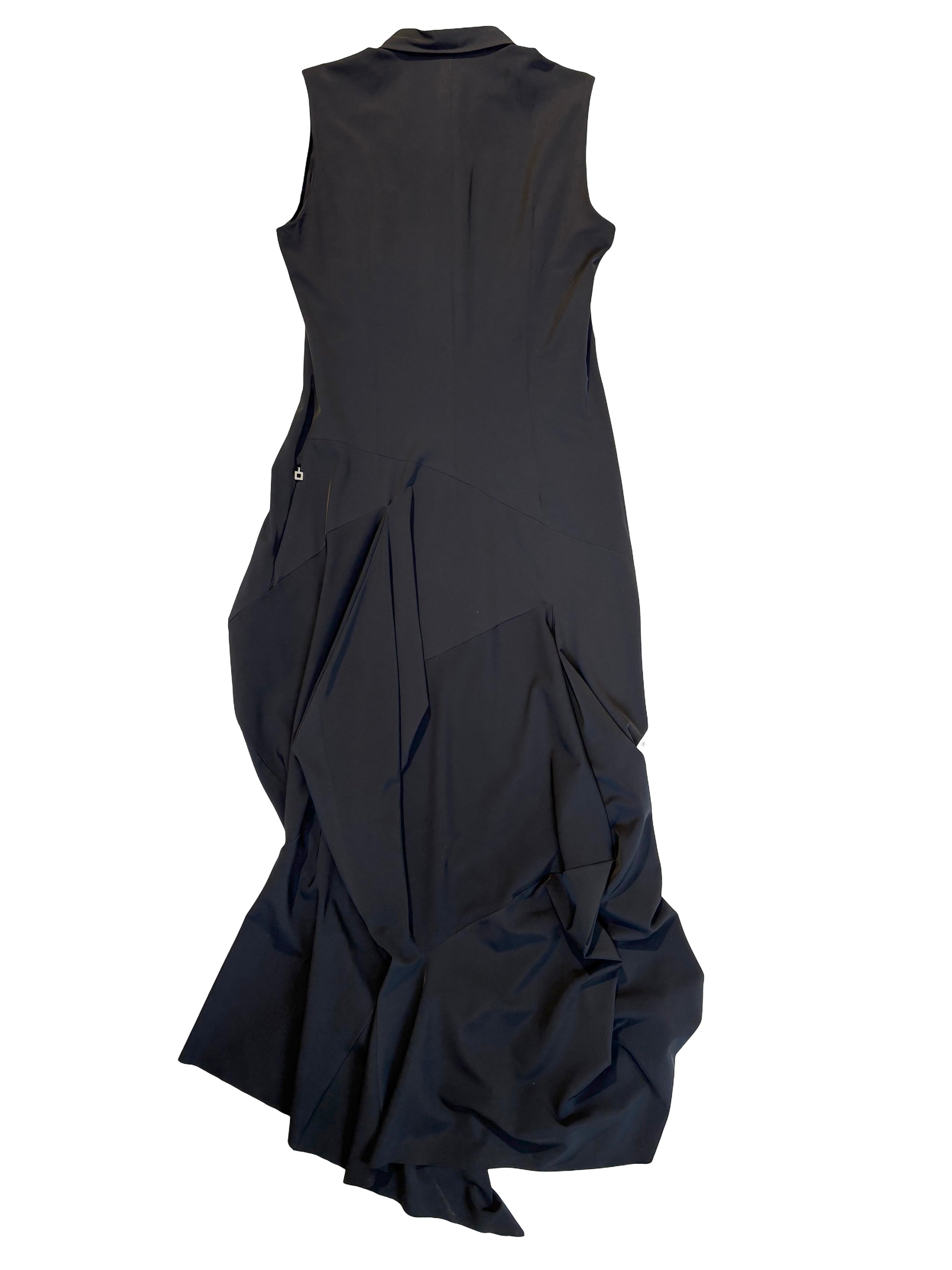 This sleeveless maxi dress by Marithé + François Girbaud plays with tailored minimalism. With sharp collar details, a button front, and architectural cut, it’s an understated piece with intelligent construction hallmarks of the Girbaud design ethos.