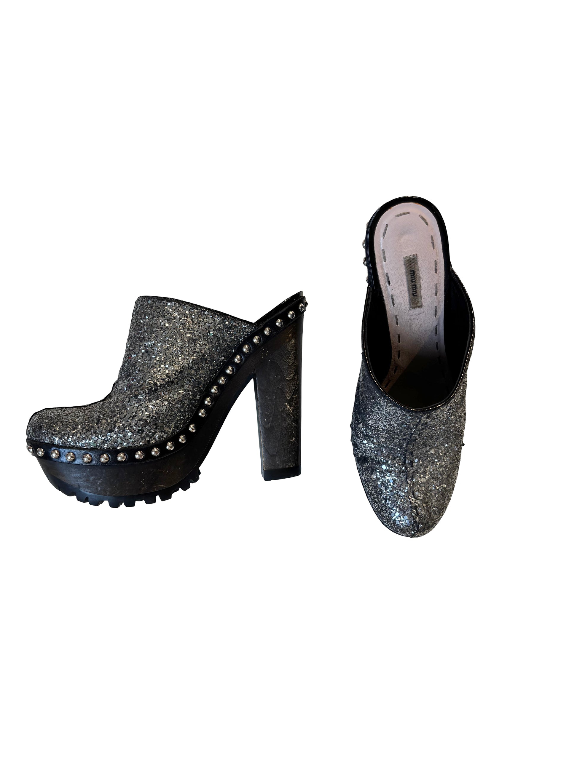 Miu Miu Glitter Platform Mules SS10 Archive