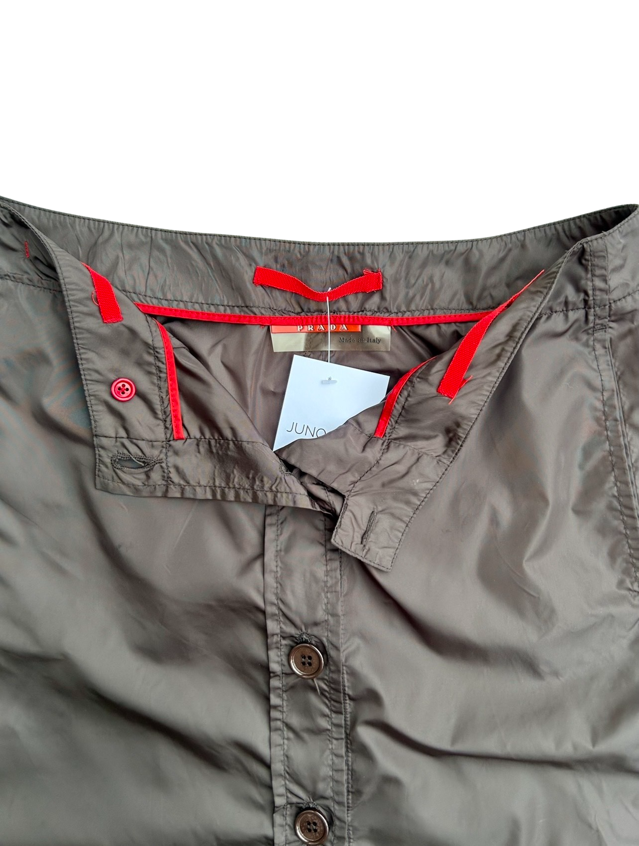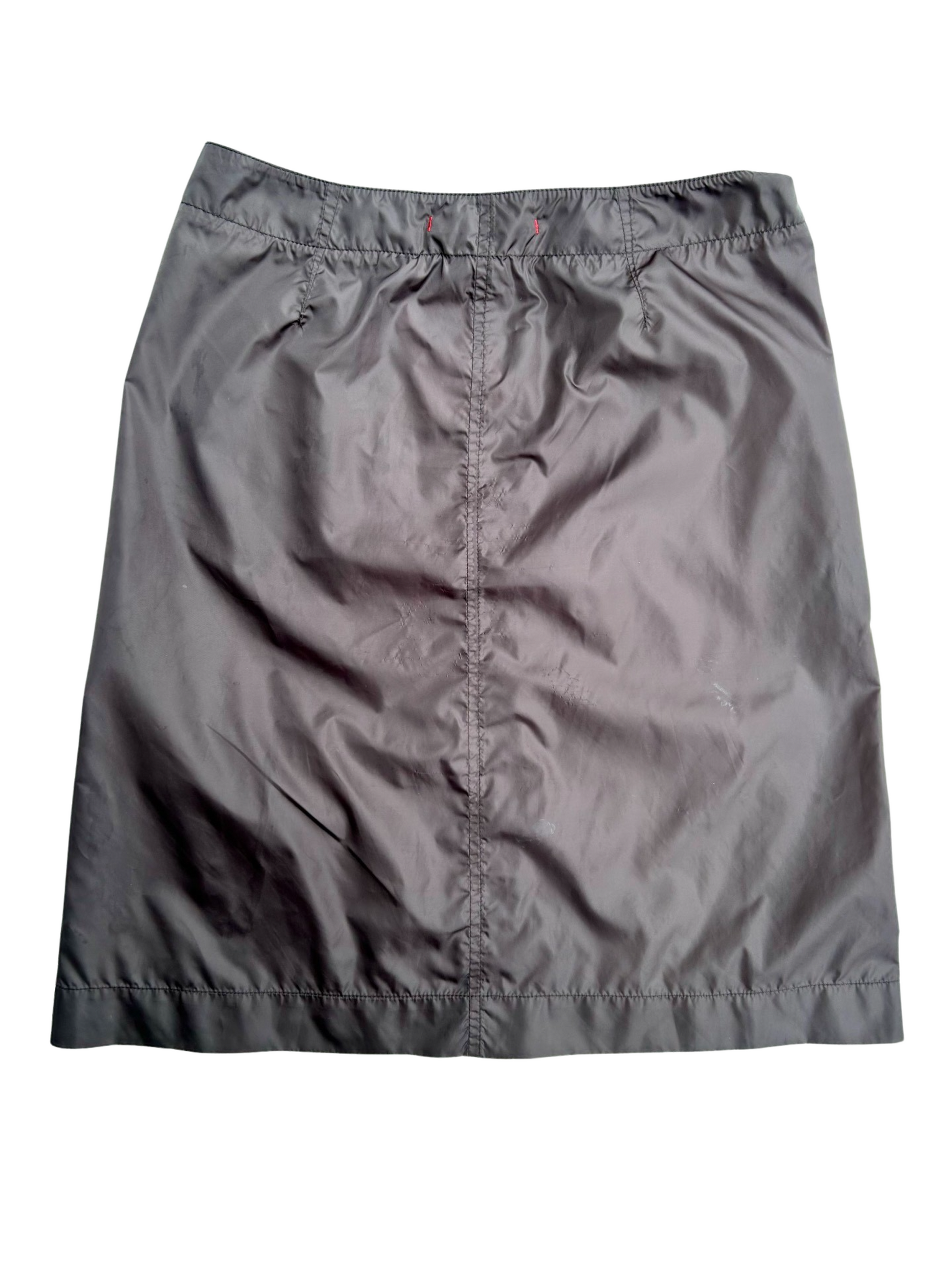 This skirt from Prada is the queen of both comfort and style. In a light fabric and buttons in the front it is both sporty and flattering. The color is a beautiful deep brown and the cut is slightly a shaped.