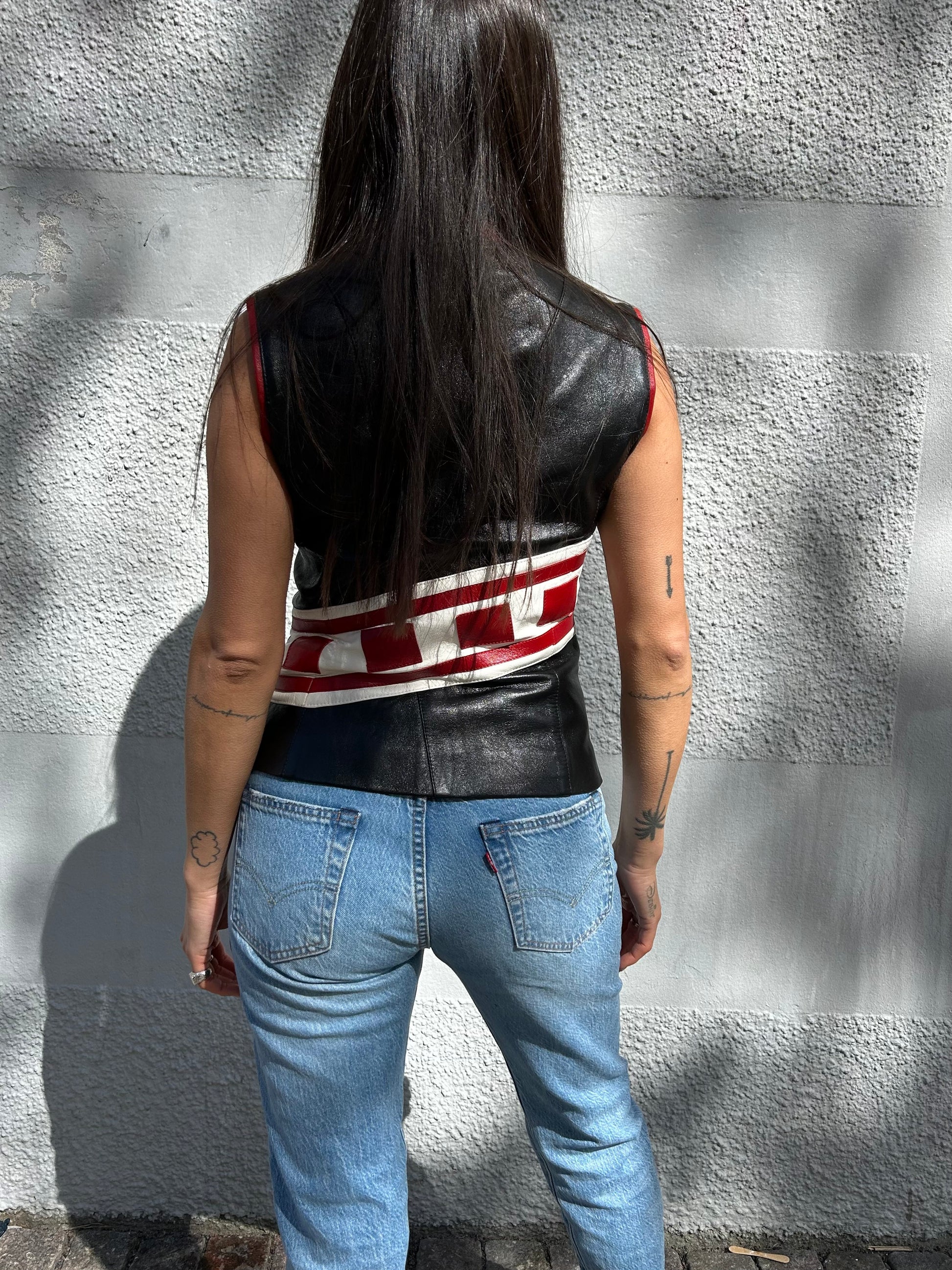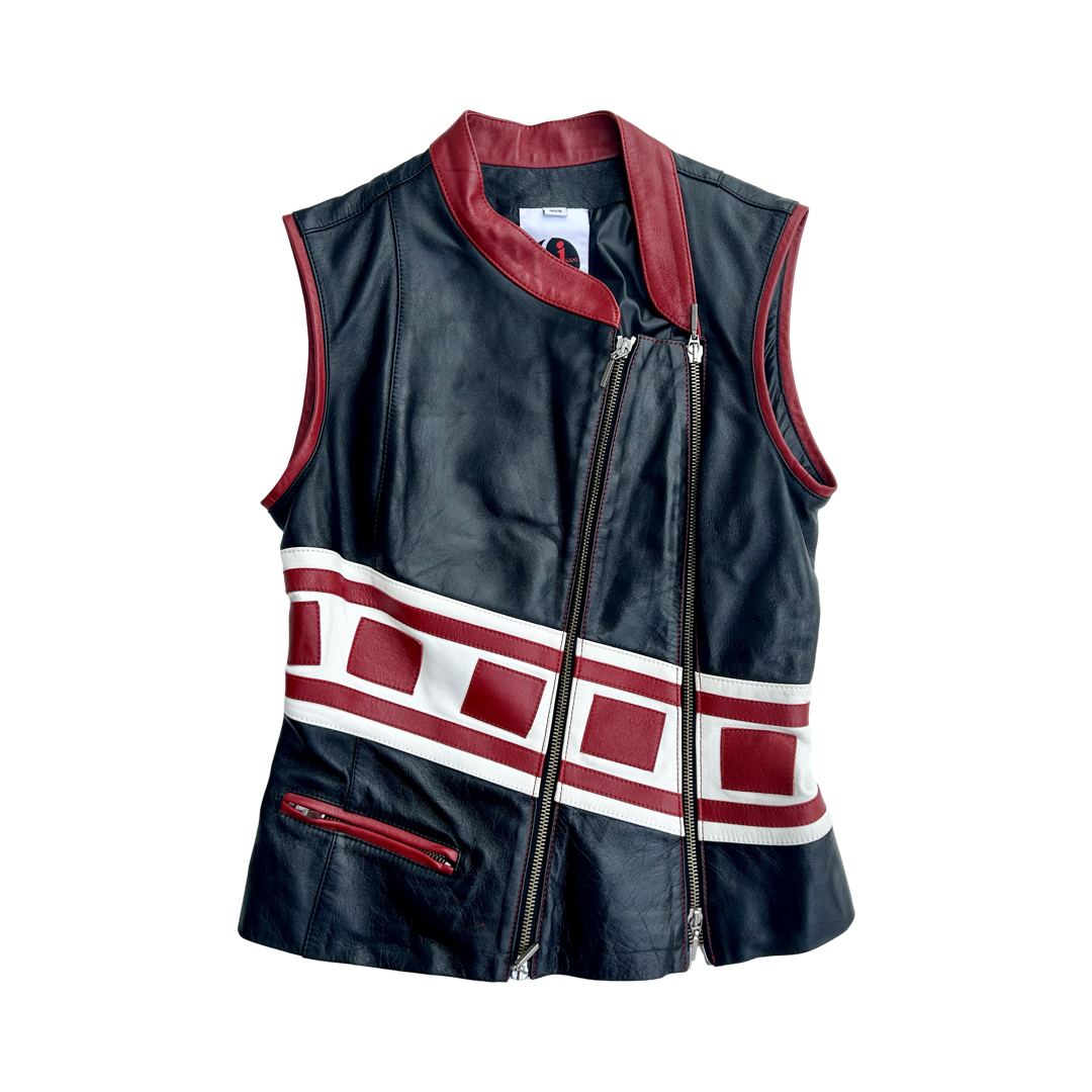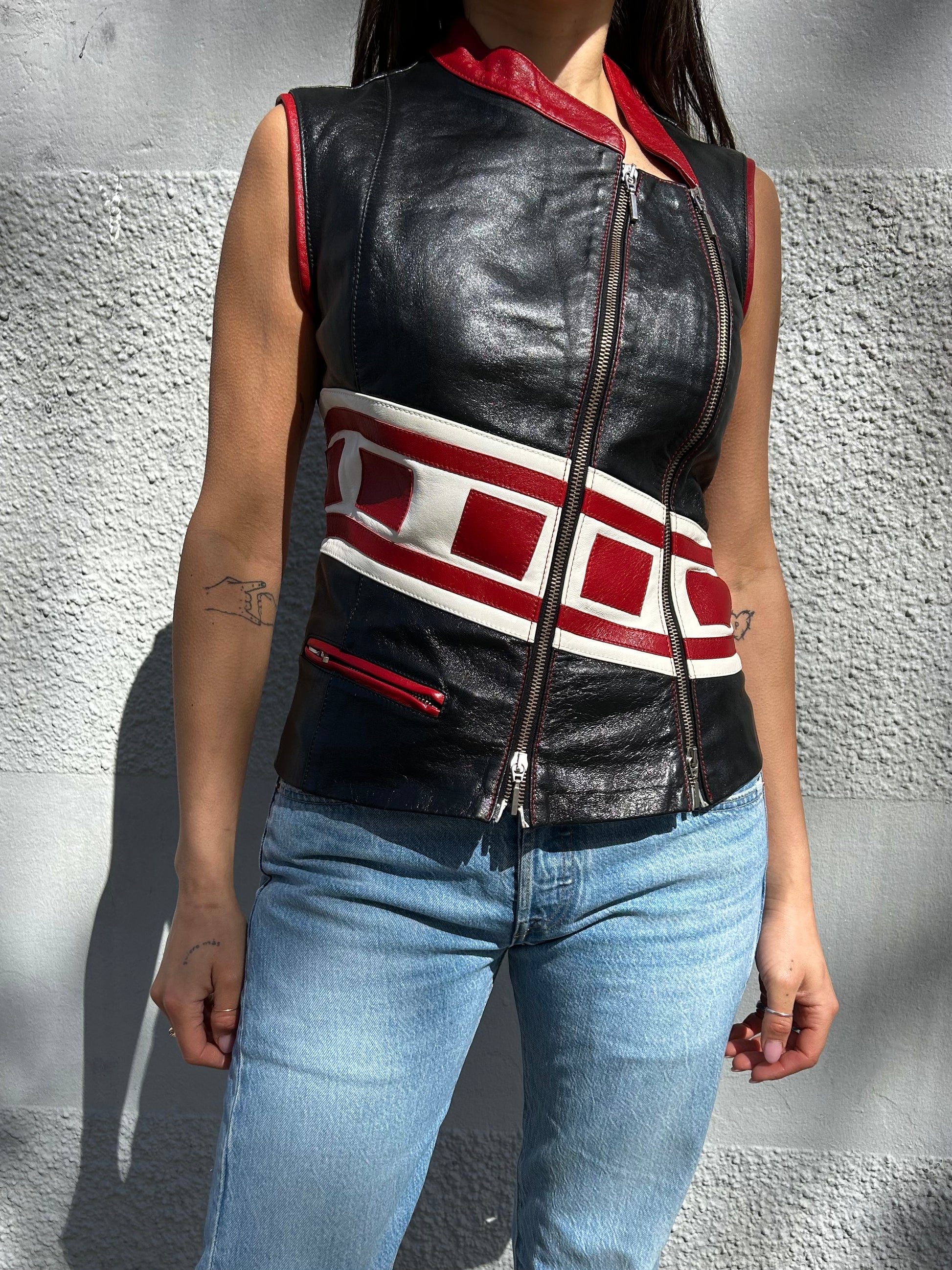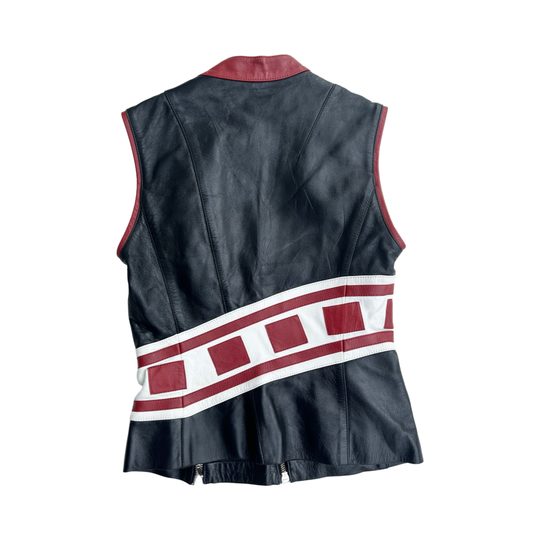A rare leather vest top fit Plain Sud. A structured top with adjustable zippers and a fitted fit.