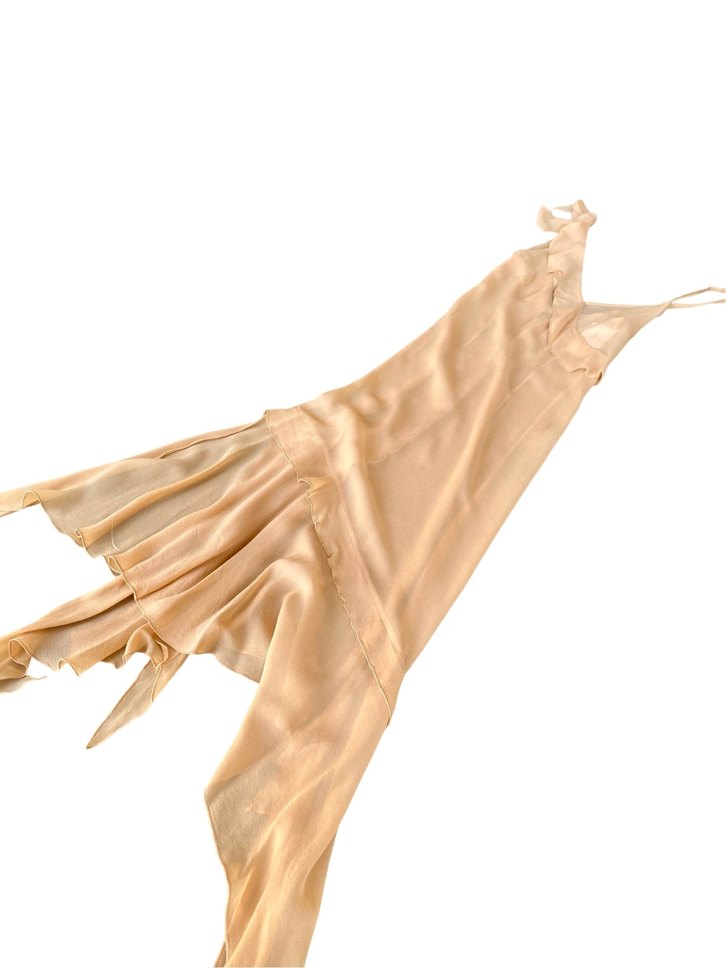 Asymmetrical light peach silk dress with flounce. The perfect summer dress!