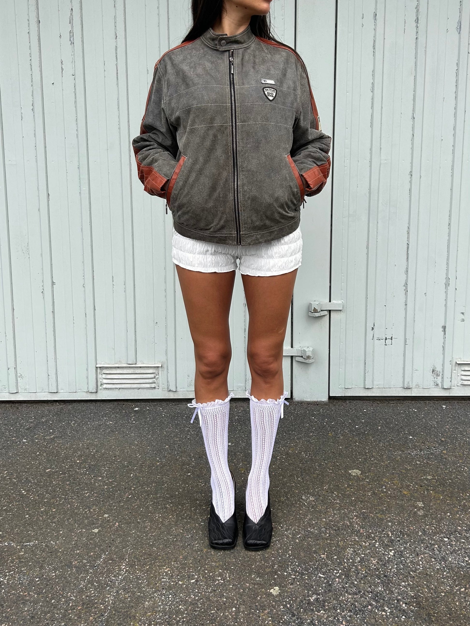 Material: outer: leather, inner: 100% cotton, lining in sleeves: 100% polyester