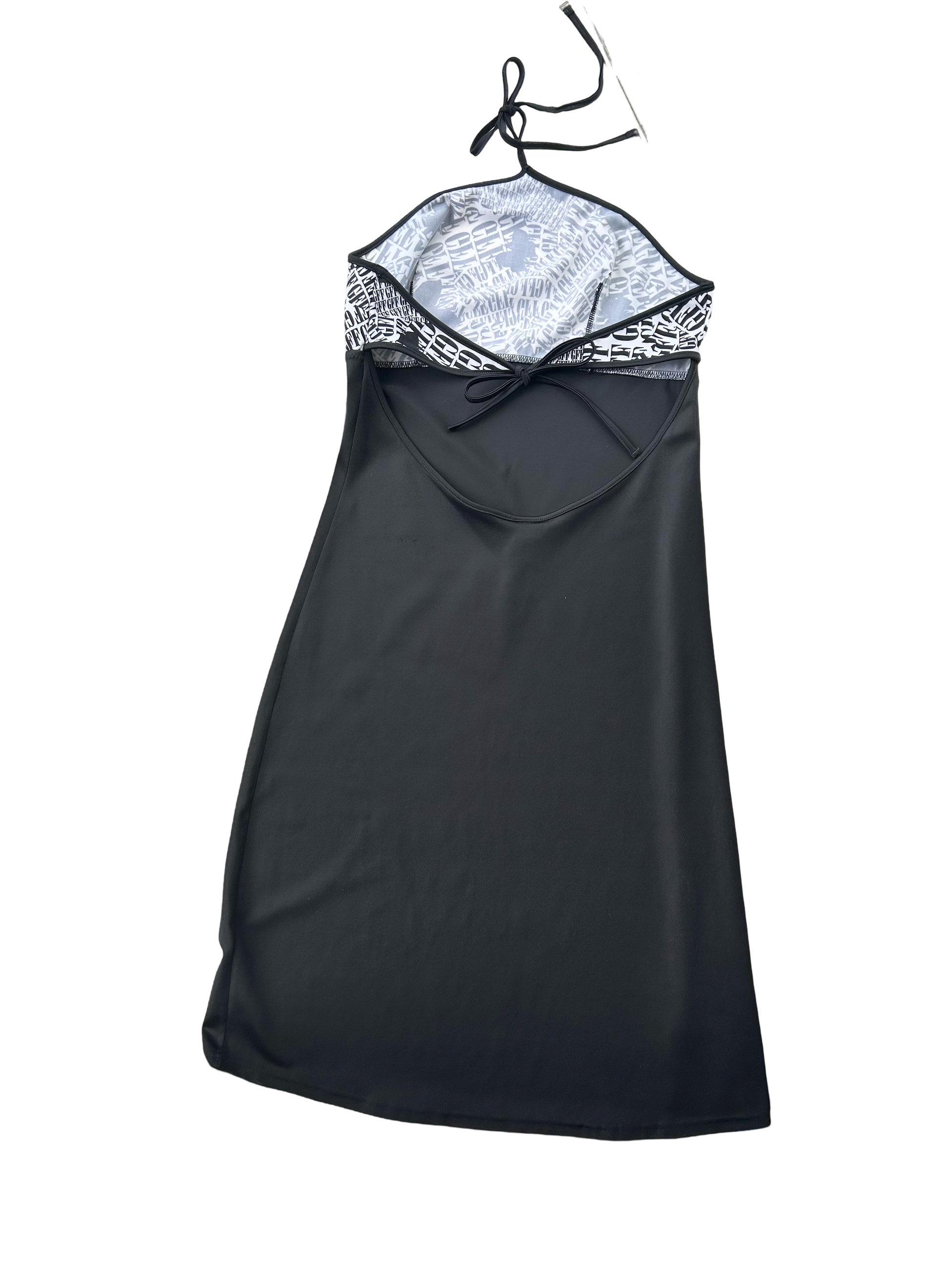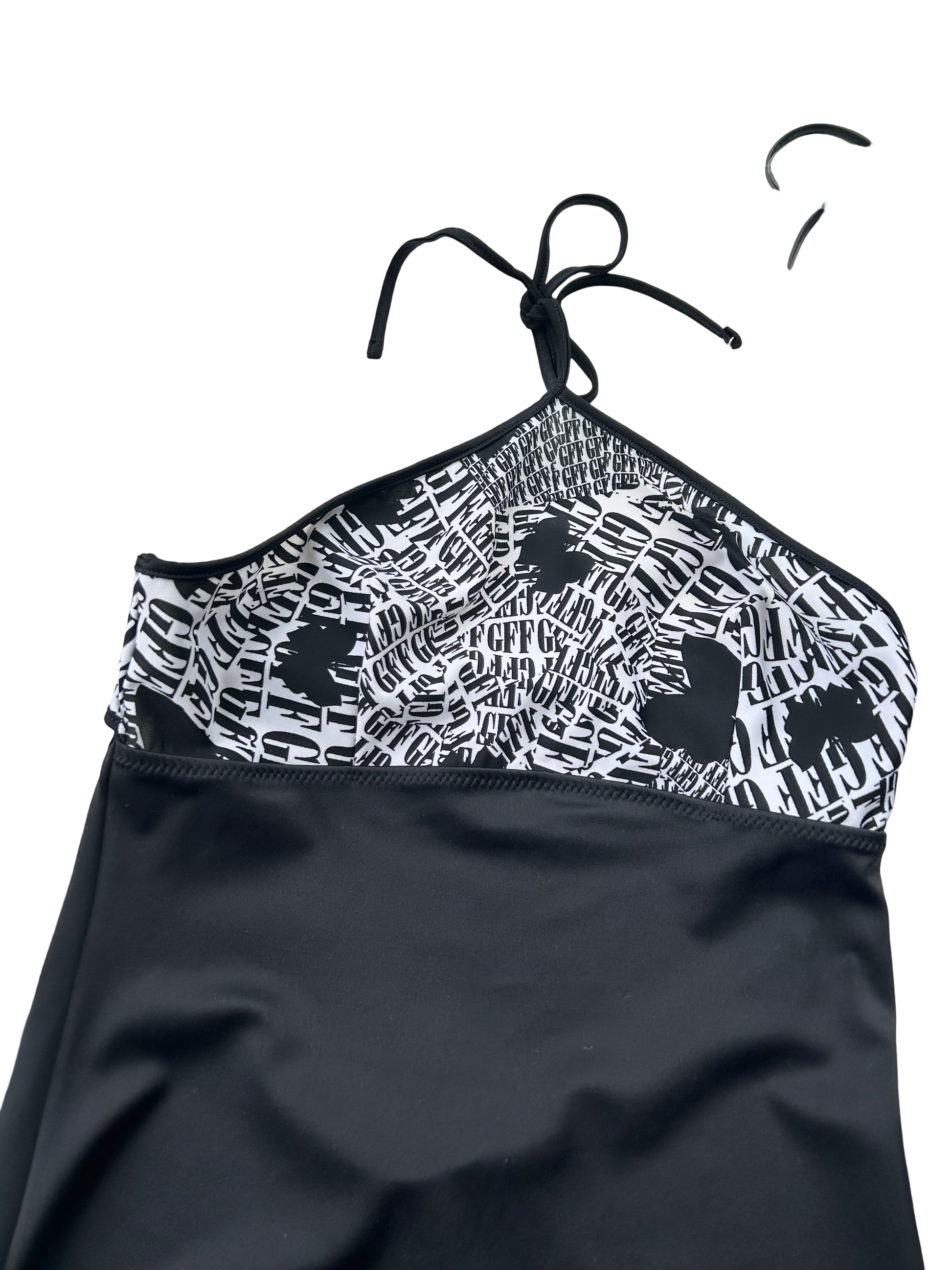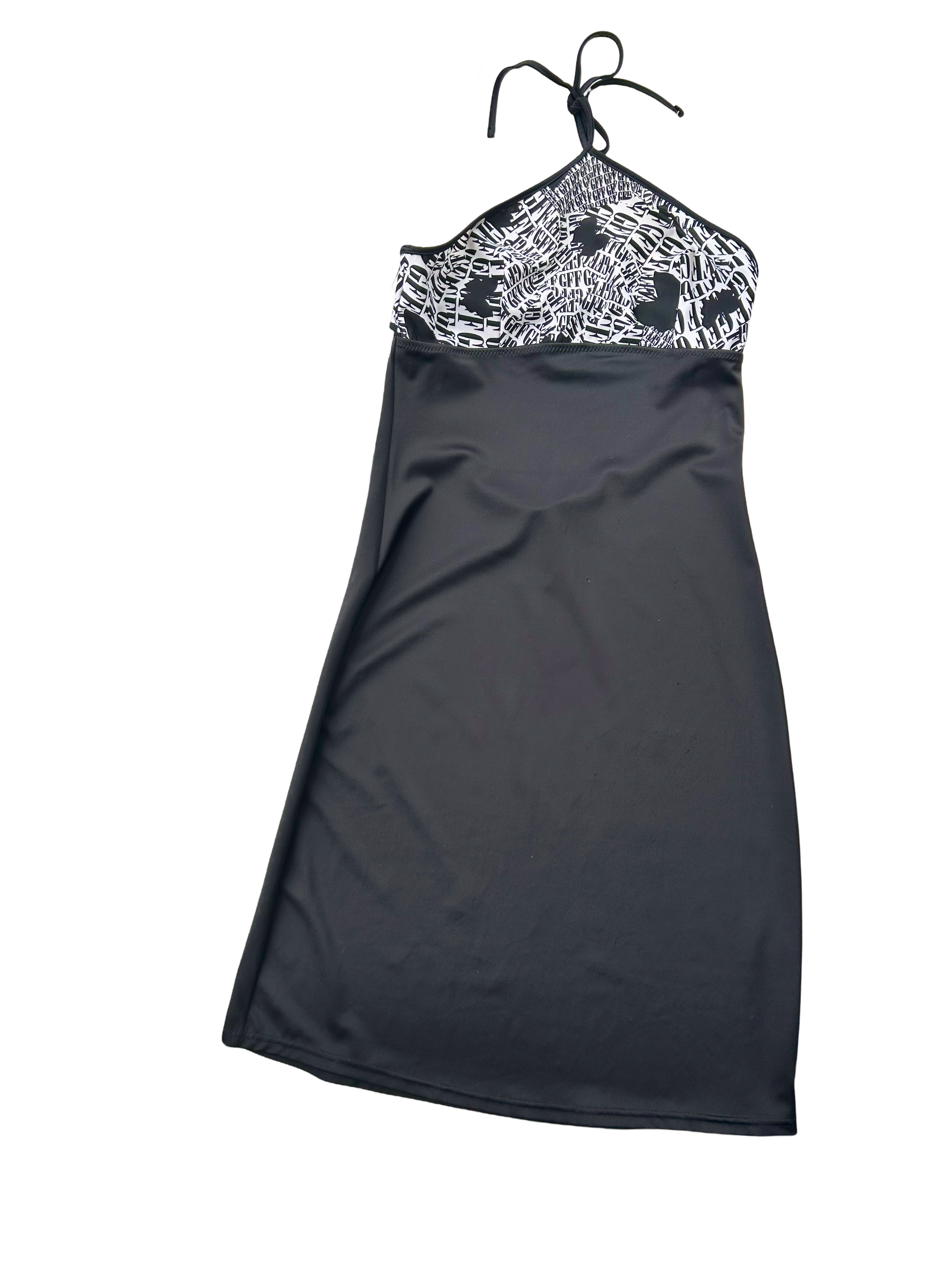 A sassy minidress in a beach bikini material, ties in back and around neck as a halter neck design. Slim fit with Gianfranco Ferre monogram on top.