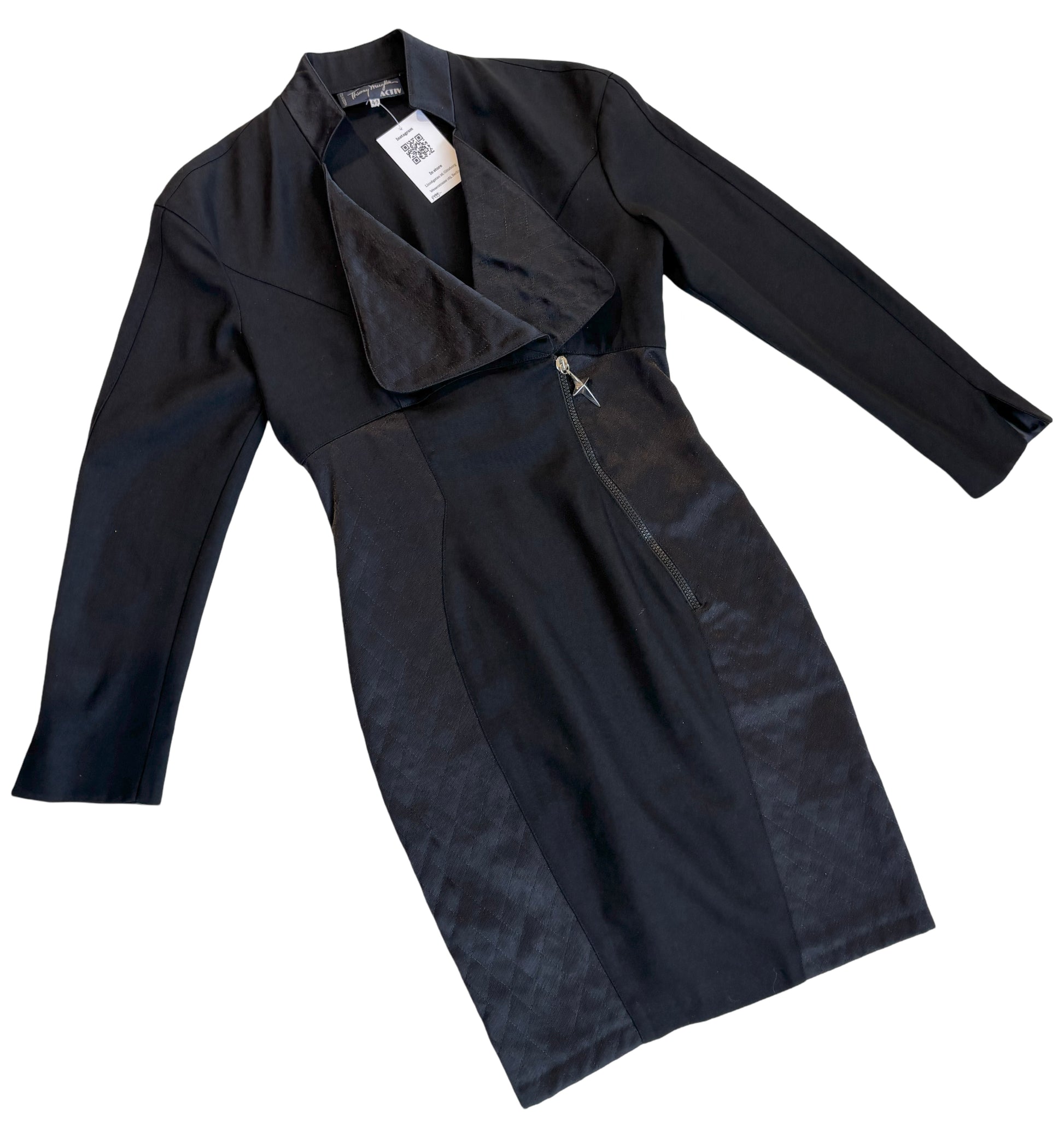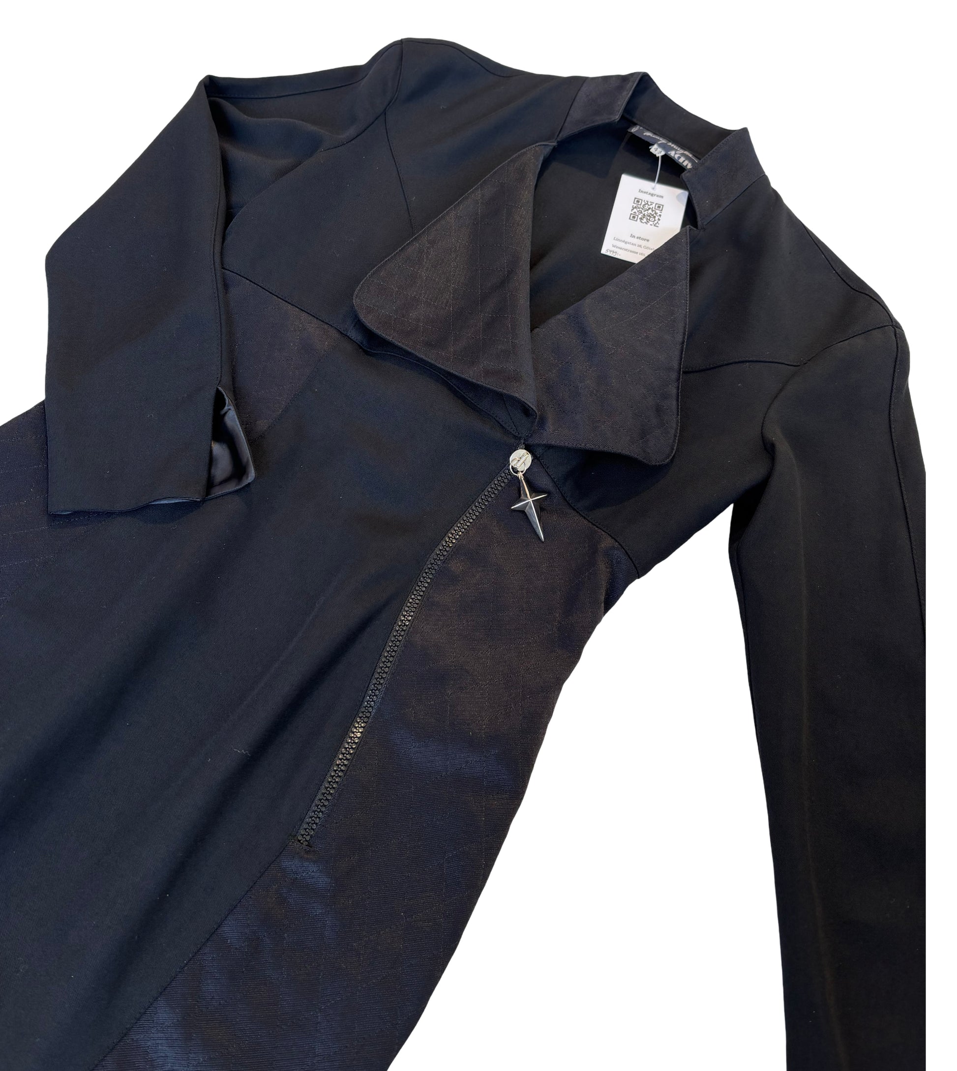 Super elegant and sexy vintage cocktail dress from Thierry Mugler in wool. The dress has a zipper with the iconic star on it. It has slits at the sleeves and the back.