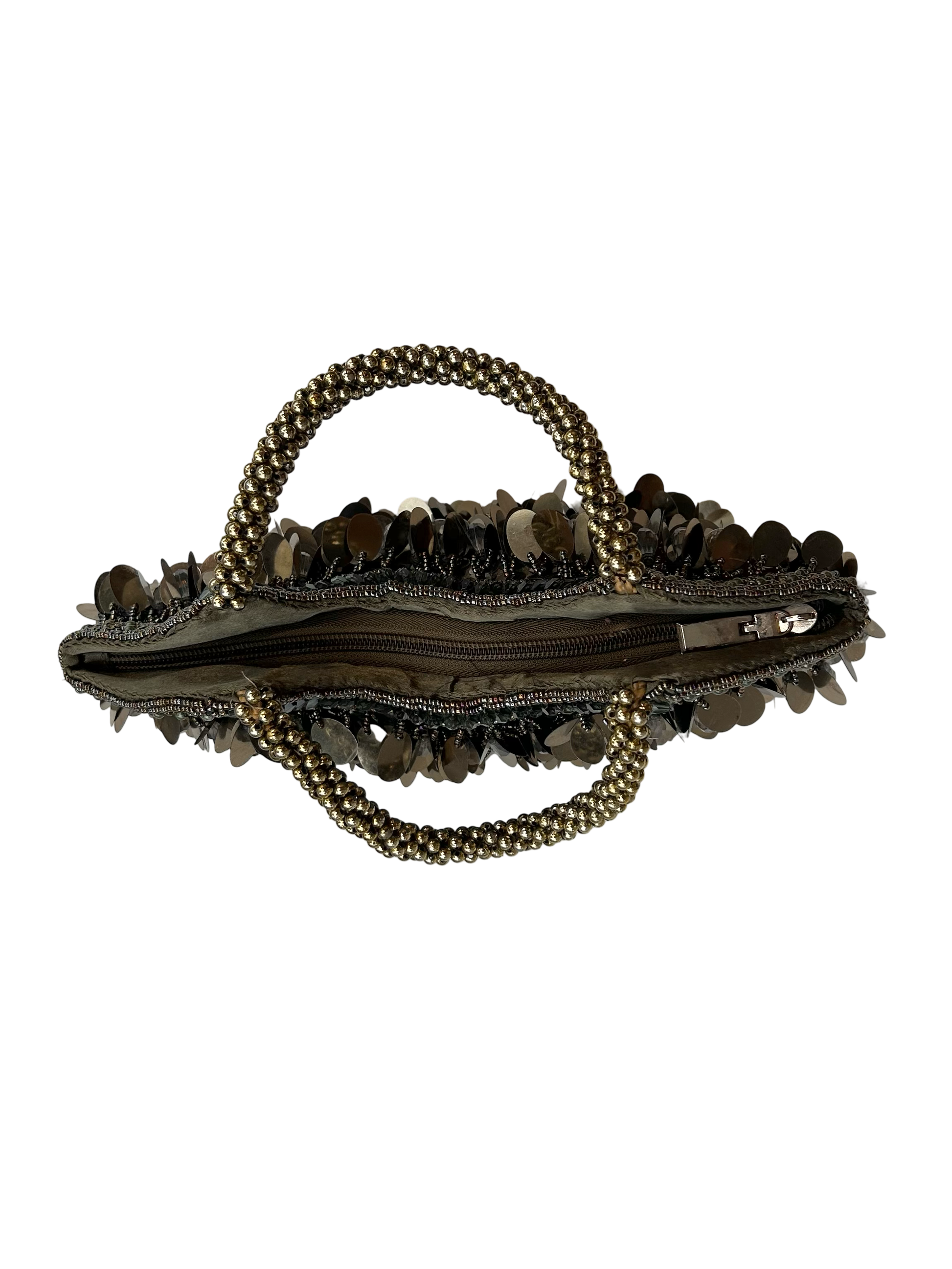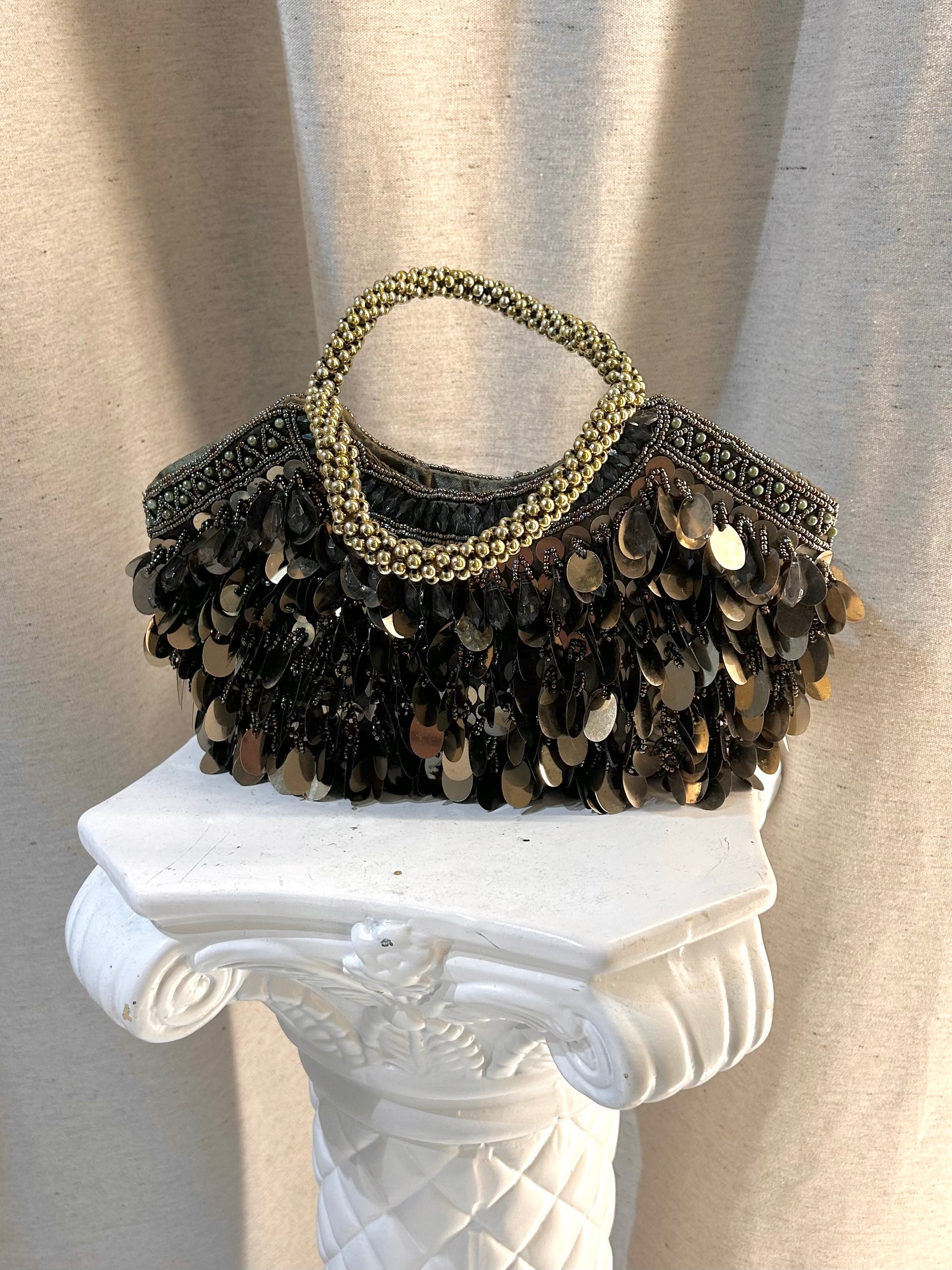 A rare vintage bag with large sequins and beautifully detailed beading all over in green and gold.