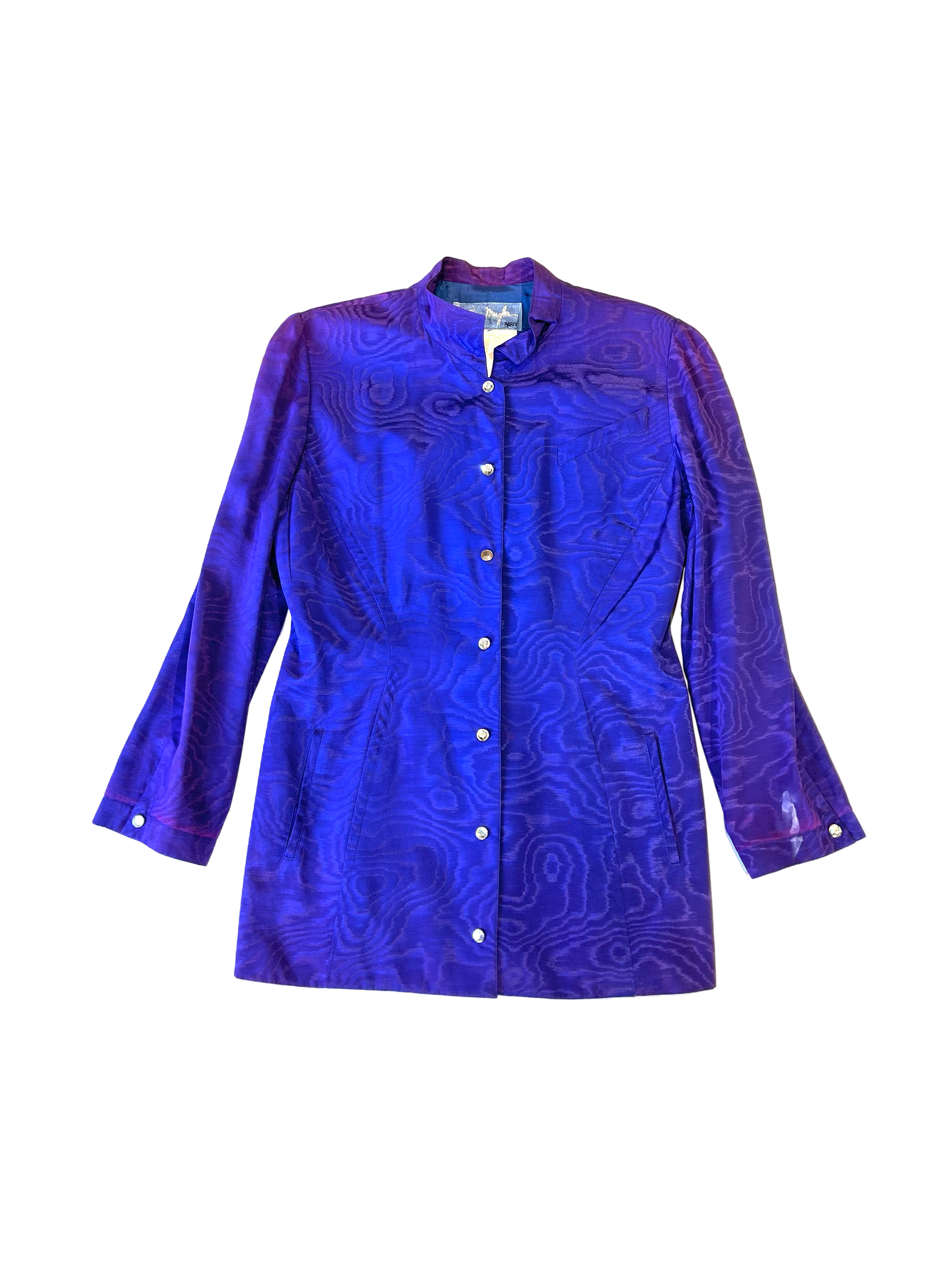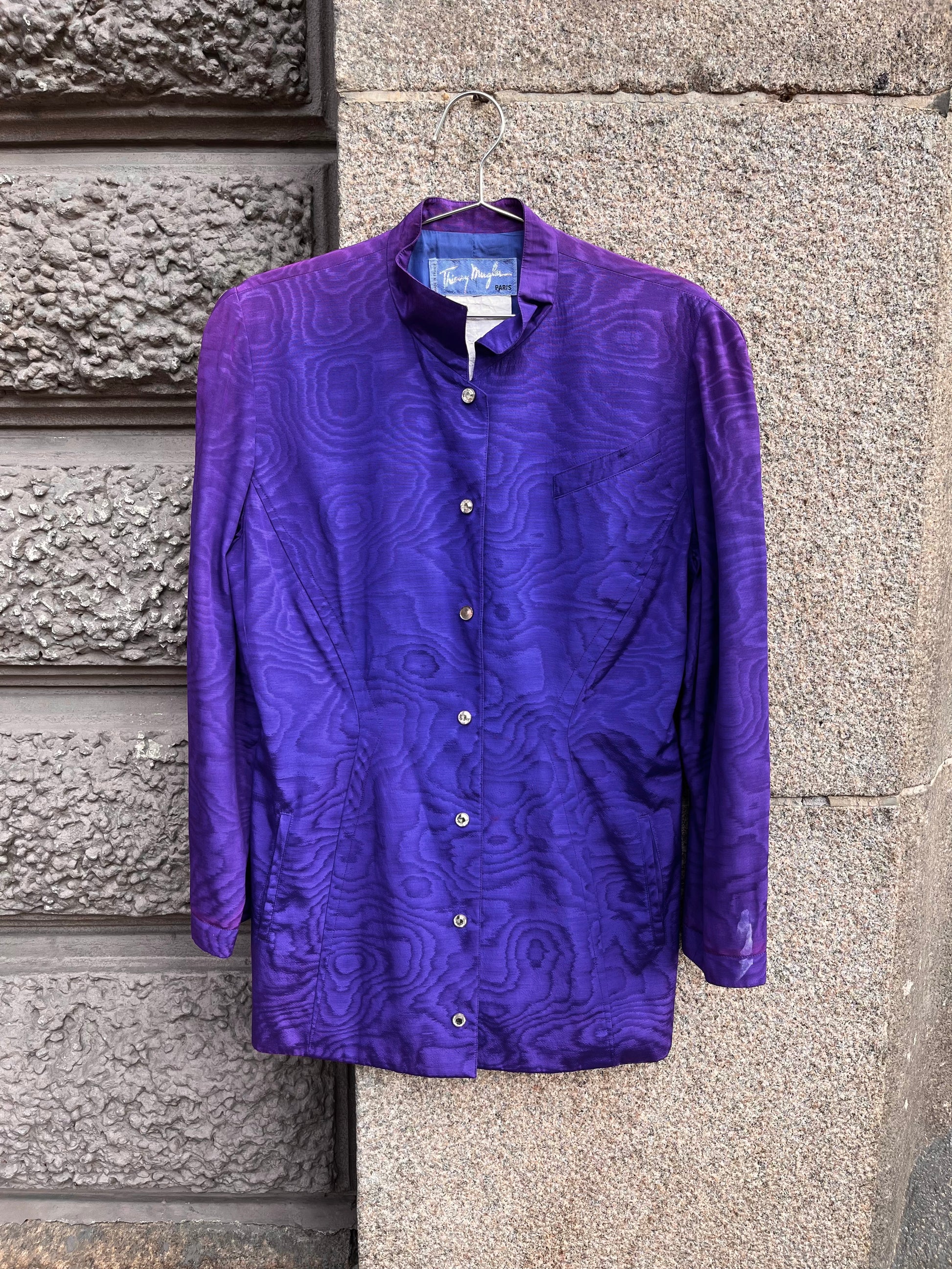 Vintage Mugler jacket, shifting in different tones of purple. Bejeweled buttons to close.